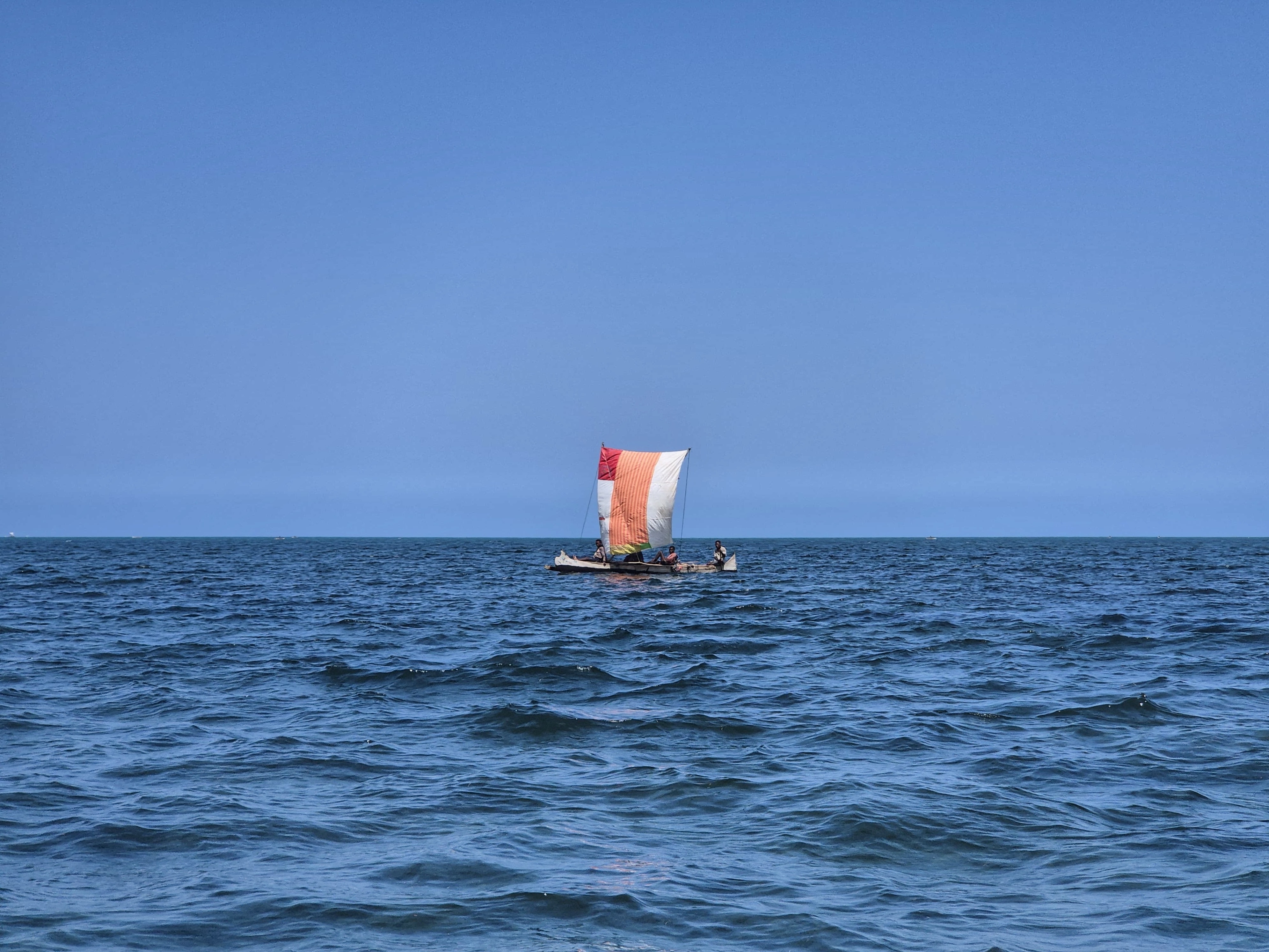 Zeil met vissers in een piroque naar Betania