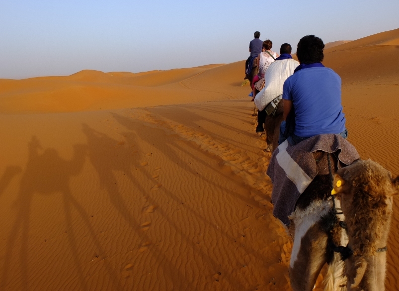 In de Tinfou- en Erg Chebbi-woestijn maken we een tocht per kameel. Tijdens de rit naar de Erg Chebbi-woestijn maken we gebruik van landrovers.