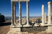 Bergama TurkijeBergama is één van de weinige steden ter wereld die rondom zijn antieke ruïnes is gebouwd, alsof ze nog onderdeel zijn van de stad. In de paar honderd jaar voor de jaartelling was dit hét centrum voor kunst wetenschap van het Midden-Oosten. In het kielzog daarvan onstond er een enorme bouwactiviteit. Veel van de paleizen, tempels, altaren en terrassen die je nu nog kunt zijn toen gebouwd. Nu vind je slechts de fundamenten, bijvoorbeeld van het beroemde altaar op de Akropolis. Kijk trouwens goed naar de ruïnes van de oude baden; je ziet gelijk hoe de Turkse hammams aan hun typische bouwstijl komen.